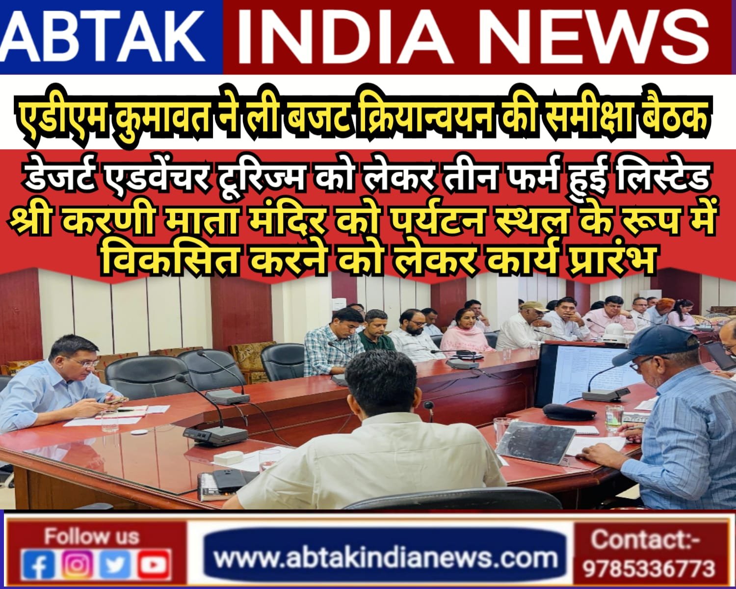 अबतक इंडिया न्यूज बीकानेर, 04 अगस्त। एडीएम प्रशासन  रामावतार कुमावत ने सोमवार को कलेक्ट्रेट सभागार में बजट घोषणा वर्ष 2024-25 और 2025-26 के क्रियान्वयन को लेकर विभिन्न विभागों की समीक्षा बैठक की। बैठक में  कुमावत ने कहा कि बजट घोषणाओं को जल्द से जल्द पूरा करने के लिए राज्य सरकार प्रतिबद्ध है लिहाजा बजट घोषणाओं से संबंधित विभाग के जिला स्तरीय अधिकारी बजट घोषणाओं के क्रियान्वयन को व्यक्तिगत रूप से देंखे और अद्यतन अपडेट लेकर ही बैठक में आएं।
