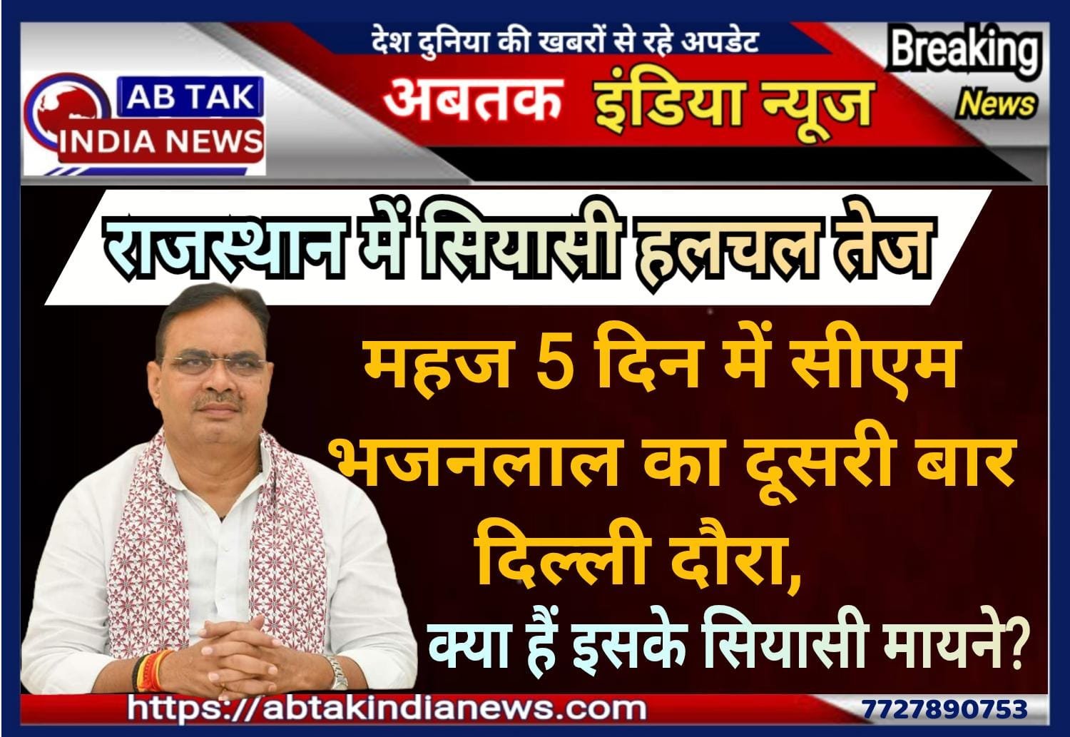 अबतक इंडिया न्यूज 2 अगस्त । राजस्थान के मुख्यमंत्री भजनलाल शर्मा शनिवार को एक बार फिर दिल्ली रवाना हो गए हैं. बीते 5 दिनों में भजनलाल शर्मा दूसरी बार दिल्ली दौरे पर हैं. सीएम भजनलाल के दिल्ली रवाना होते ही राजस्थान की सियासत में हलचल तेज हो गई है. माना जा रहा है कि मुख्यमंत्री भजनलाल शर्मा दिल्ली में बीजेपी के कई बड़े नेताओं से मुलाकात करेंगे. जानकारी के अनुसार, भजनलाल की दिल्ली में अमित शाह और जेपी नड्डा के साथ मुलाकात होनी है. इसके अलावा राजस्थान के मुख्यमंत्री हरदीप सिंह पुरी से भी मिलेंगे.