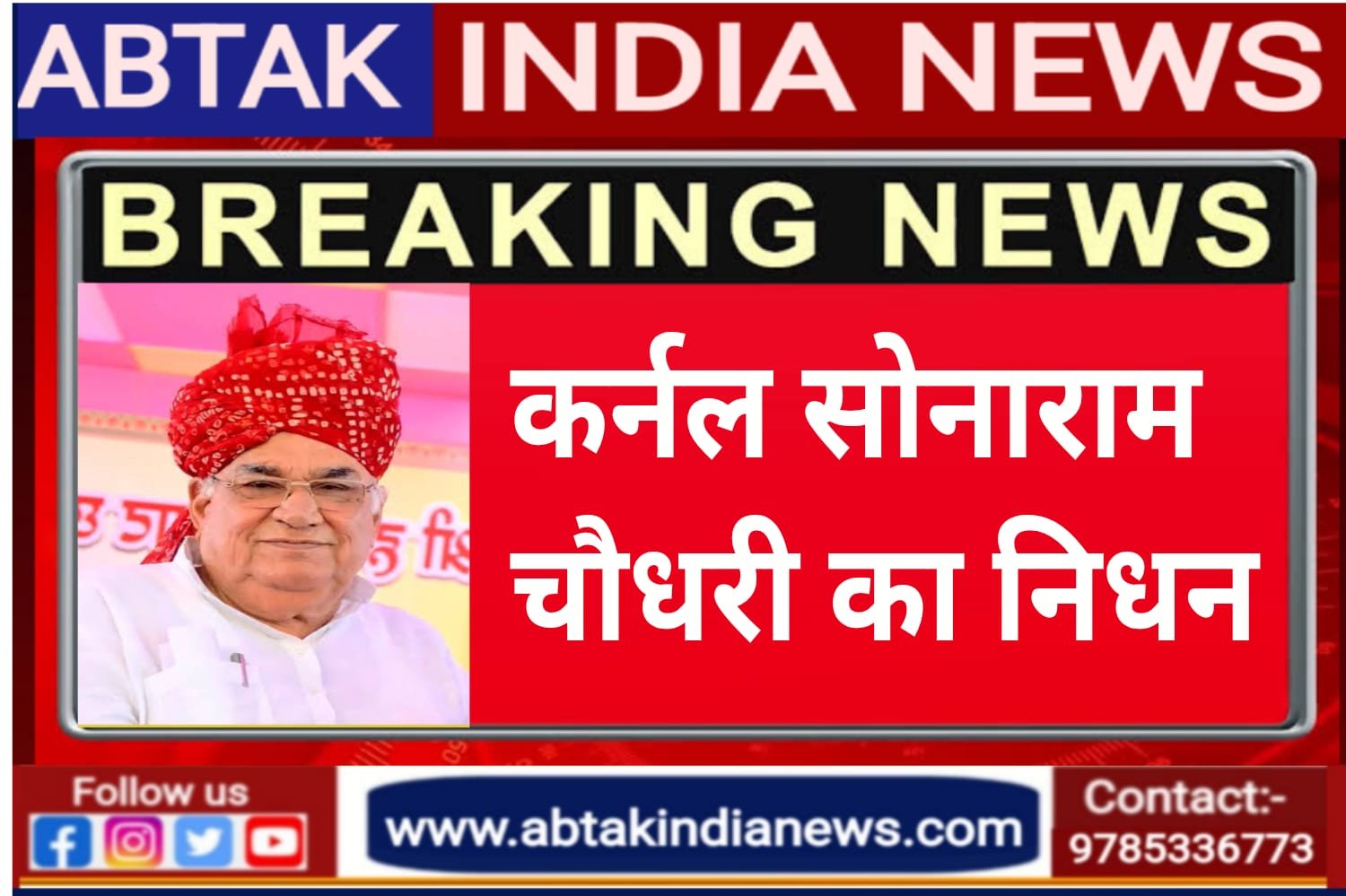 कर्नल सोनाराम चौधरी का निधन, दिल्ली के अपोलो अस्पताल में ली आखिरी सांस
