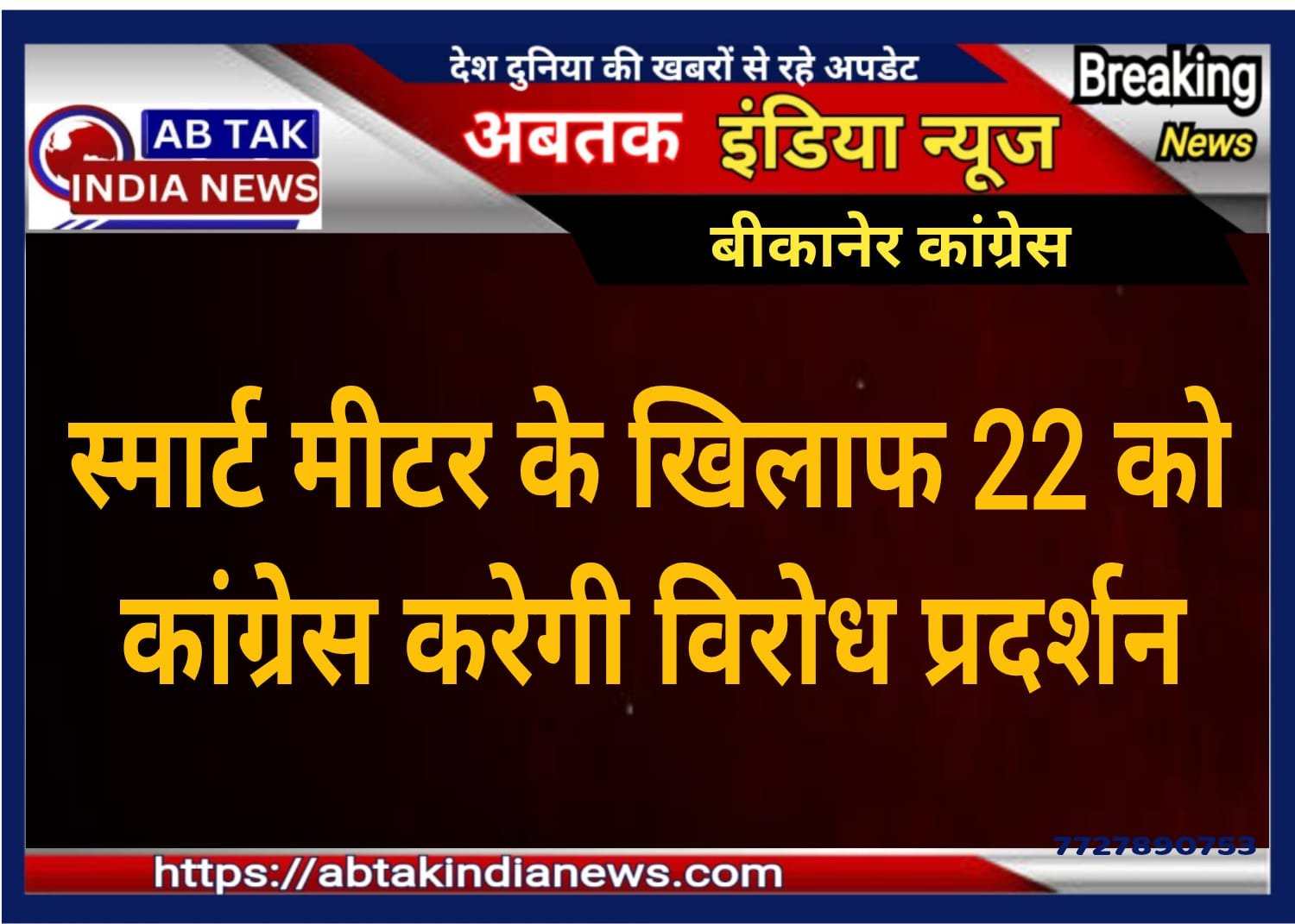 Home » ब्रेकिंग न्यूज़ » स्मार्ट मीटर के खिलाफ 22 जुलाई को कांग्रेस करेगी विरोध प्रदर्शन