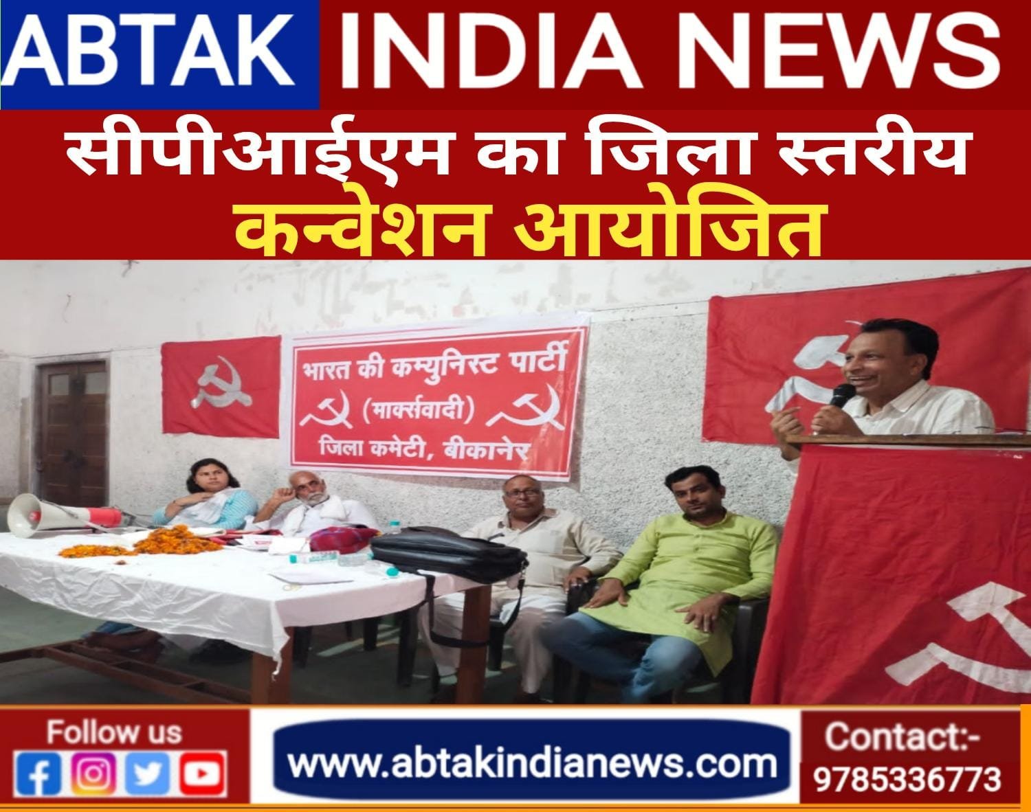 अबतक इंडिया न्यूज 16 अगस्त बीकानेर। स्थानीय आनंद निकेतन में भारत की कम्युनिस्ट पार्टी मार्क्सवादी का जिला स्तरीय कन्वेंशन आयोजित हुआ।इस मौके पर राज्य सचिव किशन पारीक ने पार्टी निर्माण के तहत नई कैडर की भर्ती के साथ-साथ जनता के मुद्दों पर जन आंदोलन को मजबूत करने की कार्य योजना बनाते हुए कहा कि सरकार स्मार्ट मीटर के नाम पर जनता को लूटने के लिए तत्पर है ऐसे में मजदूर किसान की पार्टी होने के नाते हमारी जिम्मेदारी मेहनतकश जनता के लिए ज्यादा बढ़ जाती है। बिजली के बढ़ते निजीकरण से जनता को बिजली के मूलभूत अधिकार से वंचित करने की साजिश है।जिला स्तरीय कन्वेंशन की अध्यक्षता श्री डूंगरगढ़ के पूर्व विधायक गिरधारी लाल महिया ने की। कन्वेंशन में श्रीडूंगरगढ़, लूणकरणसर, खाजूवाला, पूगल, कोलायत, बज्जू और बीकानेर सदर से पार्टी के प्रतिनिधि शामिल हुए। कन्वेंशन में पार्टी के ऑल इंडिया सम्मेलन की रिपोर्टिंग करते हुए पार्टी की नई गाइडलाइन से सभी प्रतिनिधियों को अवगत करवाया गया।कन्वेंशन में राज्य पर्यवेक्षक रामरतन बगड़िया भी उपस्थित रहे। नव निर्वाचित पार्टी सचिव किशन पारीक के पहली बार बीकानेर आने पर पार्टी कार्यकर्ताओं ने सेरुणा तेजा गार्डन में स्वागत-सम्मान का कार्यक्रम आयोजित किया तथा कन्वेंशन में भी जिला पार्टी ने स्वागत एवं सम्मान करते हुए पार्टी कार्यकर्ताओं ने कहा कि बीकानेर जिले में पार्टी को मजबूत करने के लिए तन मन धन से काम करेंगे। आभार जिला सचिव सुन्दरलाल बेनीवाल ने जताया।