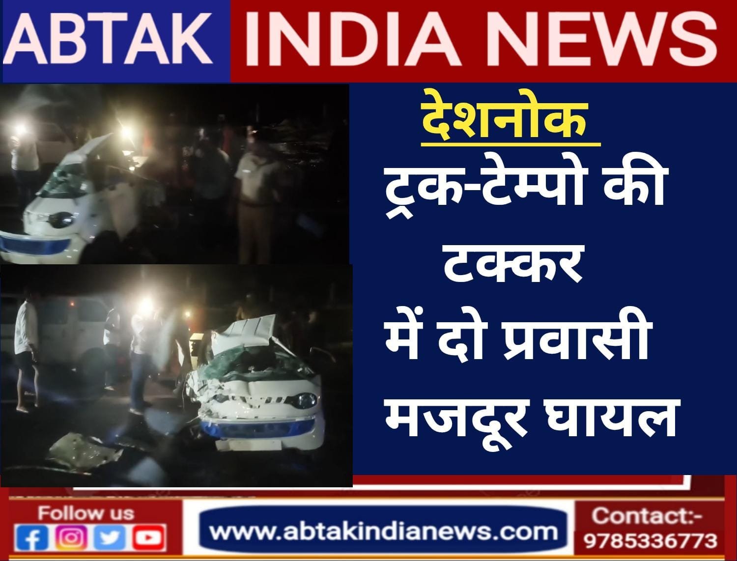 देशनोक :ट्रक-टेम्पो की टक्कर में दो प्रवासी मजदूर घायल
