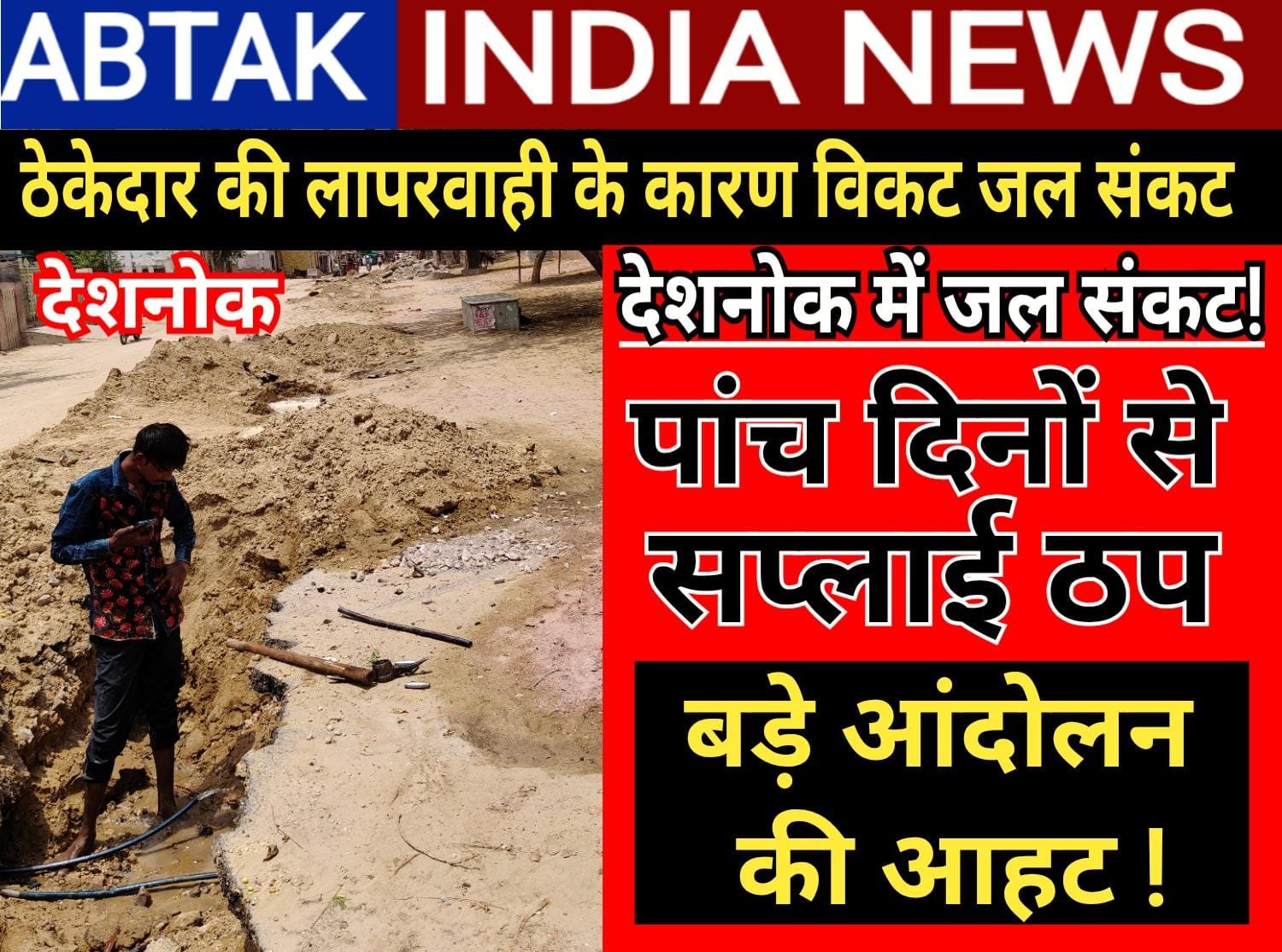 अबतक इंडिया न्यूज देशनोक 3 जुलाई । PWD ठेकेदार की लापरवाही के कारण पेयजल सप्लाई की पाइप लाइन 6 दिन पूर्व टूट गई जो अभी तक दुरुस्त नहीं की गई हैं। पिछले पांच दिनों से एक बूंद पानी की सप्लाई नहीं हुई हैं। एक ठेकेदार की लापरवाही के कारण देशनोक में जल संकट विकट स्थिति में पहुंच चुका हैं।