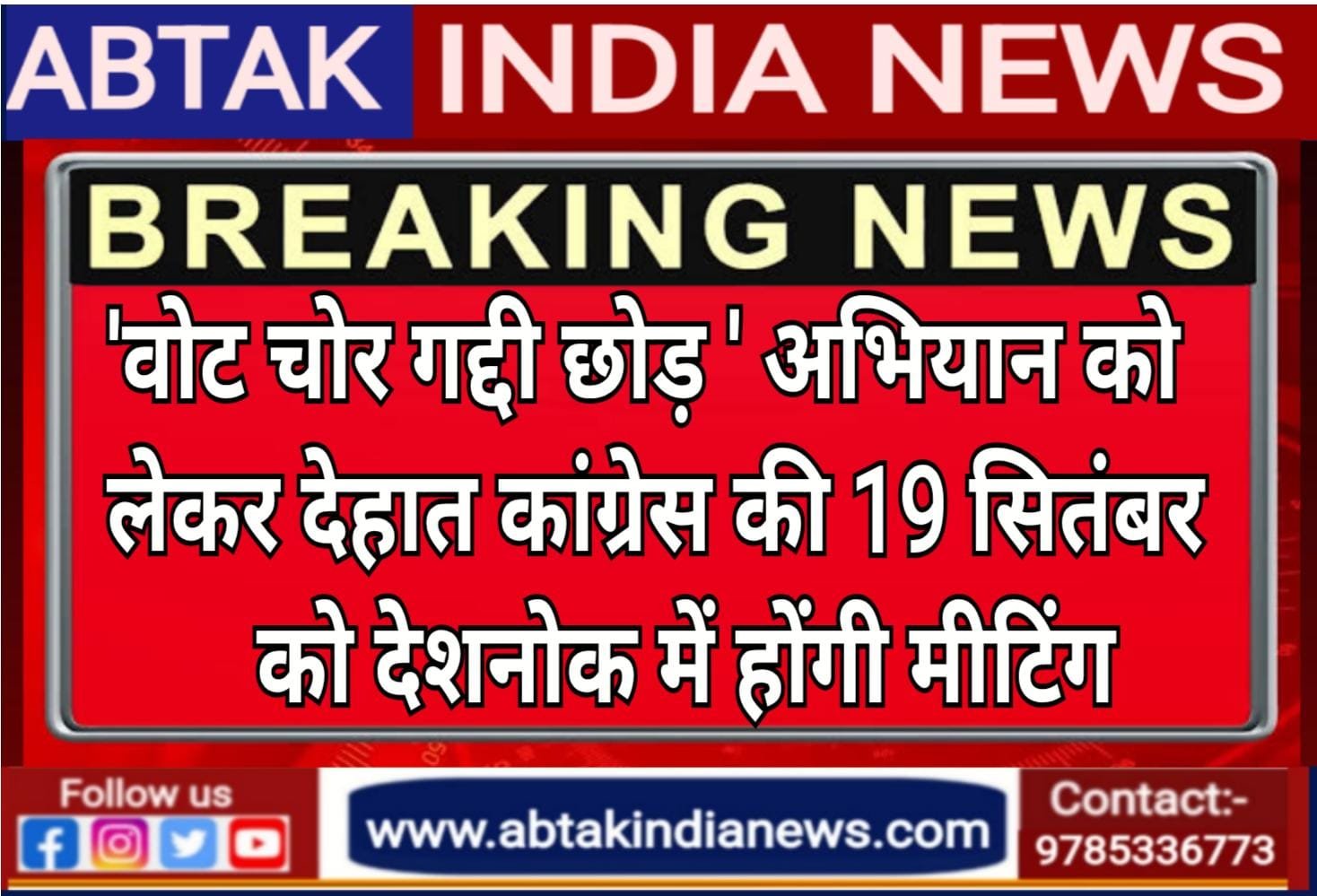 इसी जनविरोधी कृत्य के विरुद्ध अखिल भारतीय कांग्रेस कमेटी के आह्वान पर एवं राजस्थान प्रदेश कांग्रेस कमेटी के निर्देशानुसार जिला कांग्रेस कमेटी देहात अध्यक्ष बिशनाराम सियाग की अध्यक्षता में एवं जिला कांग्रेस प्रभारी श्रीमती शिमला नायक,अभियान प्रभारी श्रीमती शबनम गोदारा के आतिथ्य में आगामी 19 सितम्बर को प्रातः 11:00 बजे से देशनोक में जिला स्तरीय मीटिंग आयोजित की जाएगी।