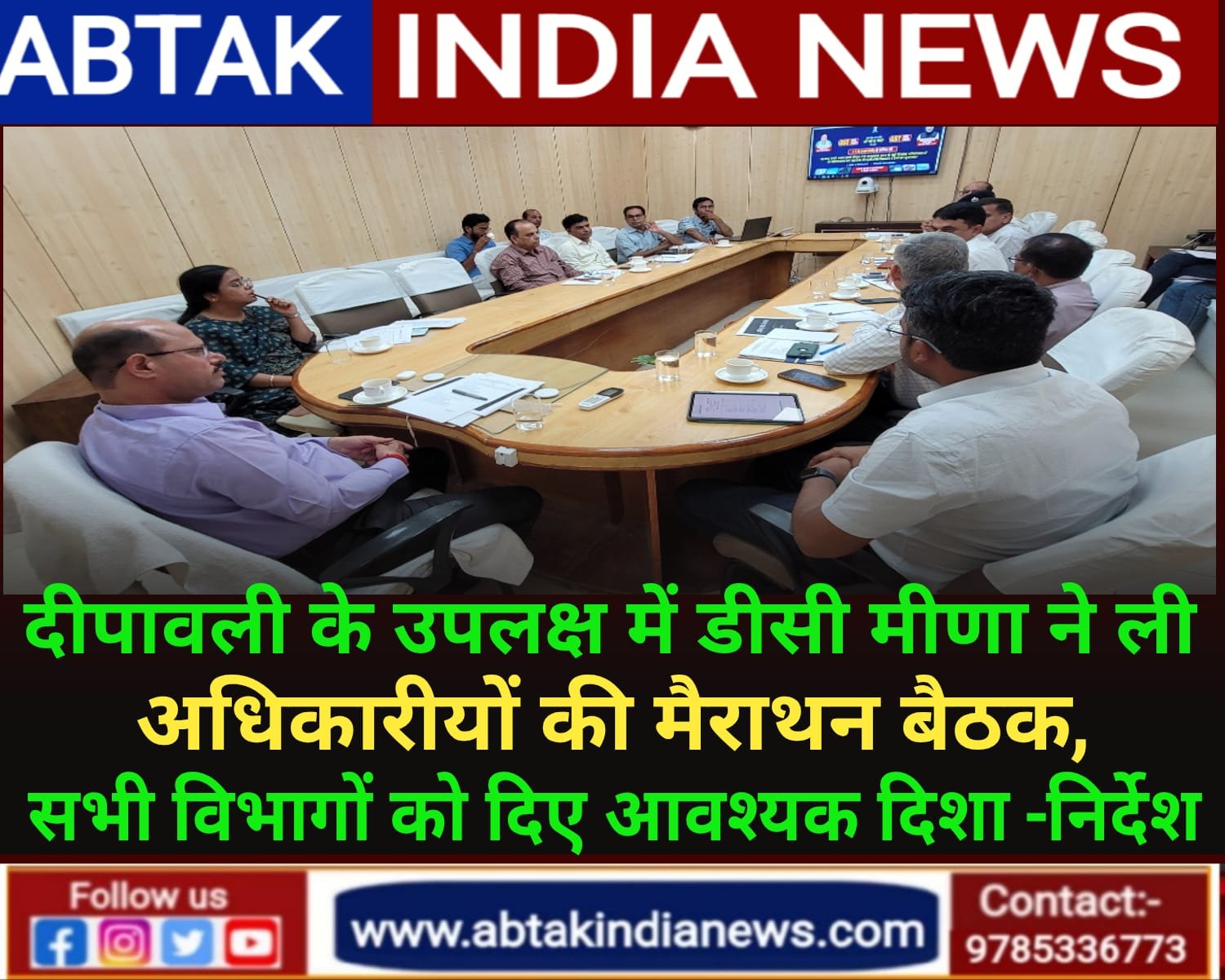 अबतक इंडिया न्यूज बीकानेर, 14 अक्टूबर। दीपावली पर्व के उपलक्ष में संभागीय आयुक्त विश्राम मीणा ने मंगलवार को शहरी क्षेत्र में सड़कों की स्थिति, पेयजल आपूर्ति, वर्षा जल निकासी, चिकित्सा एवं यातायात व्यवस्था संधारण से जुड़ी बैठक ली।