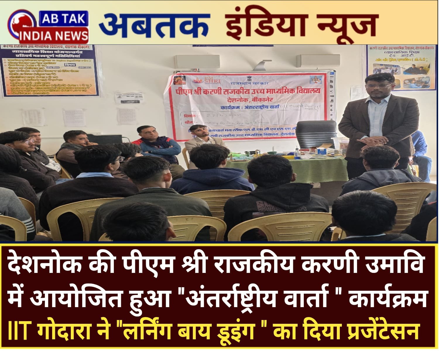 अबतक इंडिया न्यूज देशनोक 23 दिसंबर । मंगलवार को पीएम श्री करणी राजकीय उच्च माध्यमिक विद्यालय देशनोक में अंतरराष्ट्रीय वार्ता का आयोजन किया गया जिसमें पंकज गोदारा IIT गांधीनगर गुजरात से विद्यालय में उपस्थित हुए। इन्होंने छात्रों को लर्निंग बाय डूइंग यानी की खेल-खेल में शिक्षा और विज्ञान के बारे में विस्तृत जानकारी प्रदान की । छात्रों ने रुचि के साथ में इस वार्ता में भाग लिया तथा उत्साह के साथ ज्ञानवर्धन किया।