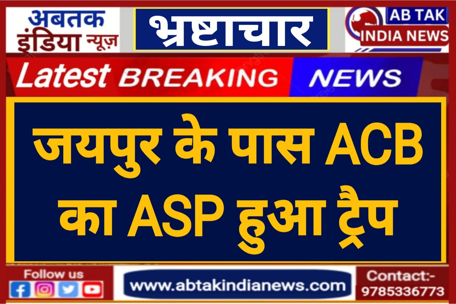 अबतक इंडिया न्यूज 27 जून । राजस्थान में भ्रष्टाचार निरोधक ब्यूरो (ACB) ने अपने विभाग के बड़े अधिकारी पर शिकंजा कसा है. जयपुर एसीबी की टीम ने एसीबी के एडिसनल एसपी (ASP) को ट्रैप किया है. आश्चर्य की बात यह है कि एडिशनल एसपी जगराम मीणा झालावाड़ में पोस्टेड थे. लेकिन तबादले के बाद वह यहां से विदा होकर जा रहे थे. लेकिन एसीबी के एडिसनल एसपी झालावाड़ से निलके तो सही, लेकिन वह अपनी मंजिल तक पहुचते उससे पहले ही जयपुर एसीबी की टीम ने उन्हें ट्रैप कर किया तो उनकी गाड़ी से 9.5 लाख रुपये बरामद हुए.