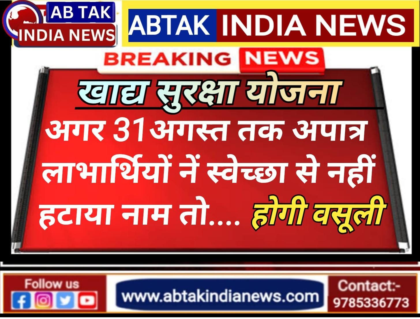 Home » ब्रेकिंग न्यूज़ » खाद्य सुरक्षा योजना में चयनित अपात्र लाभार्थियों को अंतिम मौका, चुके तो होगी वसूली