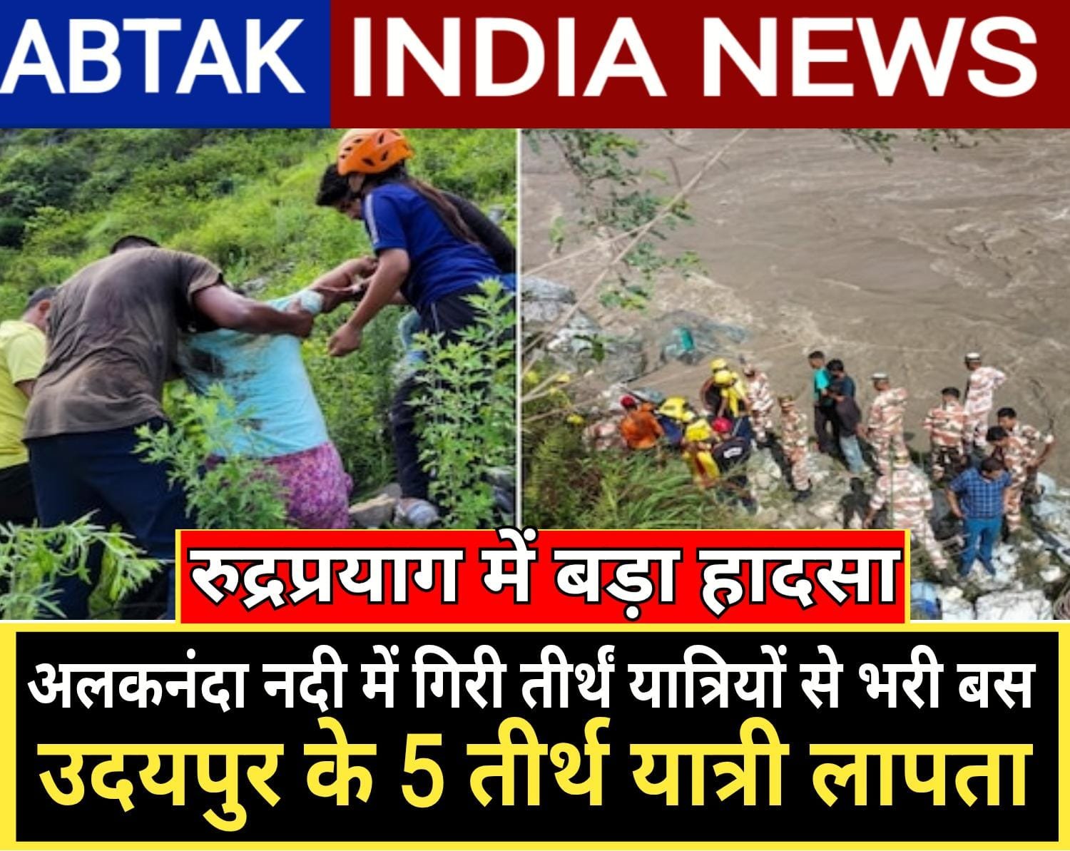 अबतक इंडिया न्यूज 26 जून । उत्तराखंड के रुद्रप्रयाग में गुरुवार तड़के बड़ा हादसा हो गया. तीर्थ यात्रियों से भरी एक मिनी बस अलकनंदा नदी में गिर गई. बस में सवार राजस्थान, गुजरात, मध्य प्रदेश और महाराष्ट्र के तीर्थ यात्री सवार थे, जो चार धाम यात्रा पर आए थे. एसएसपी रुद्रप्रयाग अक्षय कोंडे ने बताया कि सुबह 7:45 बजे हादसे की सूचना मिली थी. 31 सीटर बस हादसे के समय इसमें करीब 20 श्रद्धालु सवार थे. अब तक 8 लोगों को बचा लिया गया है और 2 शव बरामद किए गए हैं. 10 लोग अभी भी लापता हैं.