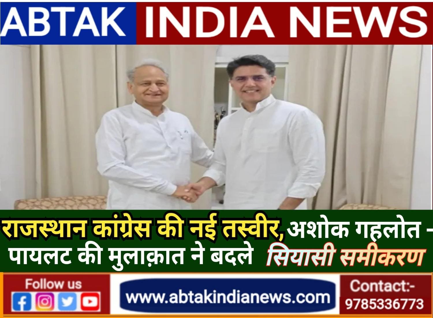 अबतक इंडिया न्यूज 7 जून । राजस्थान कांग्रेस में लंबे समय से चल रही गुटबाज़ी के बीच आज एक अहम राजनीतिक घटनाक्रम सामने आया. कांग्रेस के दो दिग्गज नेता अशोक गहलोत और सचिन पायलट के बीच जयपुर में गर्मजोशी भरी मुलाकात हुई है. सचिन पायलट खुद अशोक गहलोत के सिविल लाइंस सरकारी आवास पहुंचे और दोनों नेताओं के बीच करीब डेढ़ घंटे तक बंद कमरे में बातचीत चली. इस दौरान पार्टी और प्रदेश से जुड़े तमाम अहम मुद्दों पर चर्चा की गई.