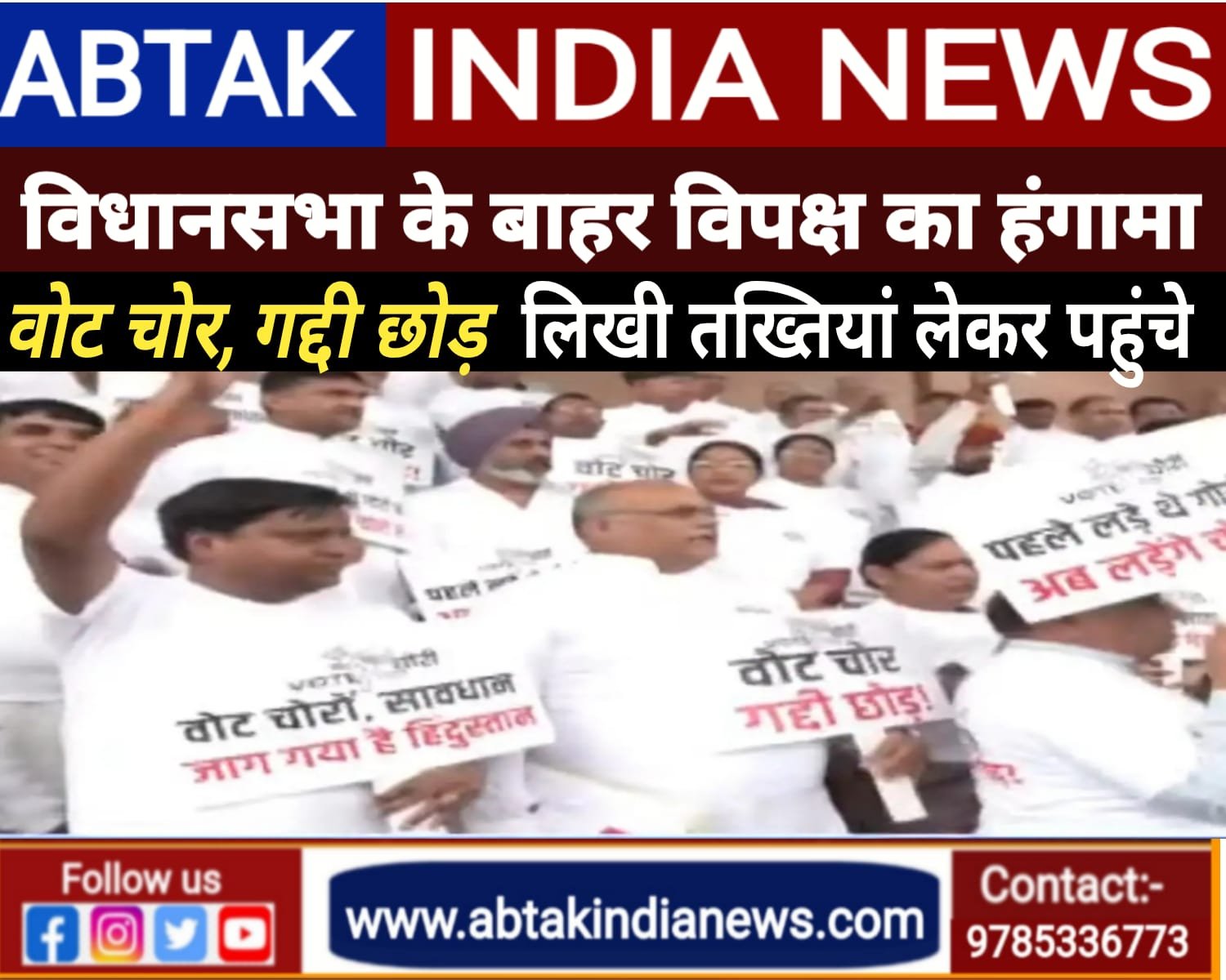 विधानसभा सत्र के पहले दिन ही कांग्रेस विधायक दल ने दिखाएं अपने तेवर. विधायक आवासीय परिसर से एक साथ पैदल मार्च के रूप में विधानसभा पहुंचे कांग्रेस के विधायक. वोट चोर गद्दी छोड़ की का नारा लिखी तख्तियां लेकर पहुंचे कांग्रेस के विधायक.