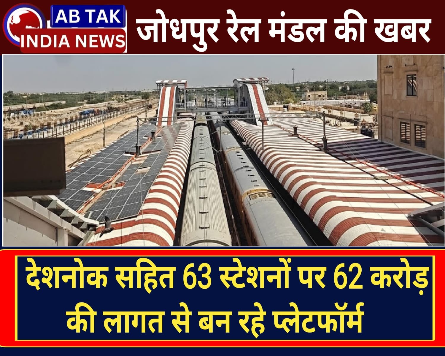 अबतक इंडिया न्यूज 1 दिसंबर जोधपुर। उत्तर पश्चिम रेलवे द्वारा यात्री सुविधाओं में बढ़ोतरी के तहत जोधपुर मंडल के 63 रेलवे स्टेशनों पर 62 करोड़ रुपए की लागत से प्लेटफॉर्म शेल्टर विकसित किए जा रहे हैं। यह कार्य वर्तमान में तेजी से प्रगति पर है।