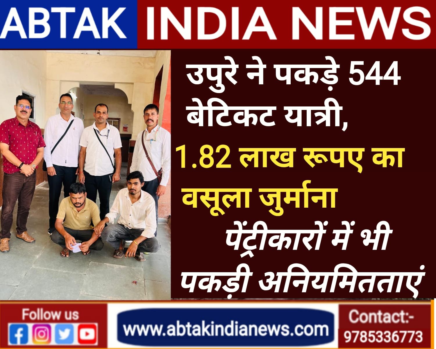 रेलवे ने औचक टिकट जांच में पकड़े 544 बेटिकट यात्रियों से 1.82 लाख रुपए वसूले