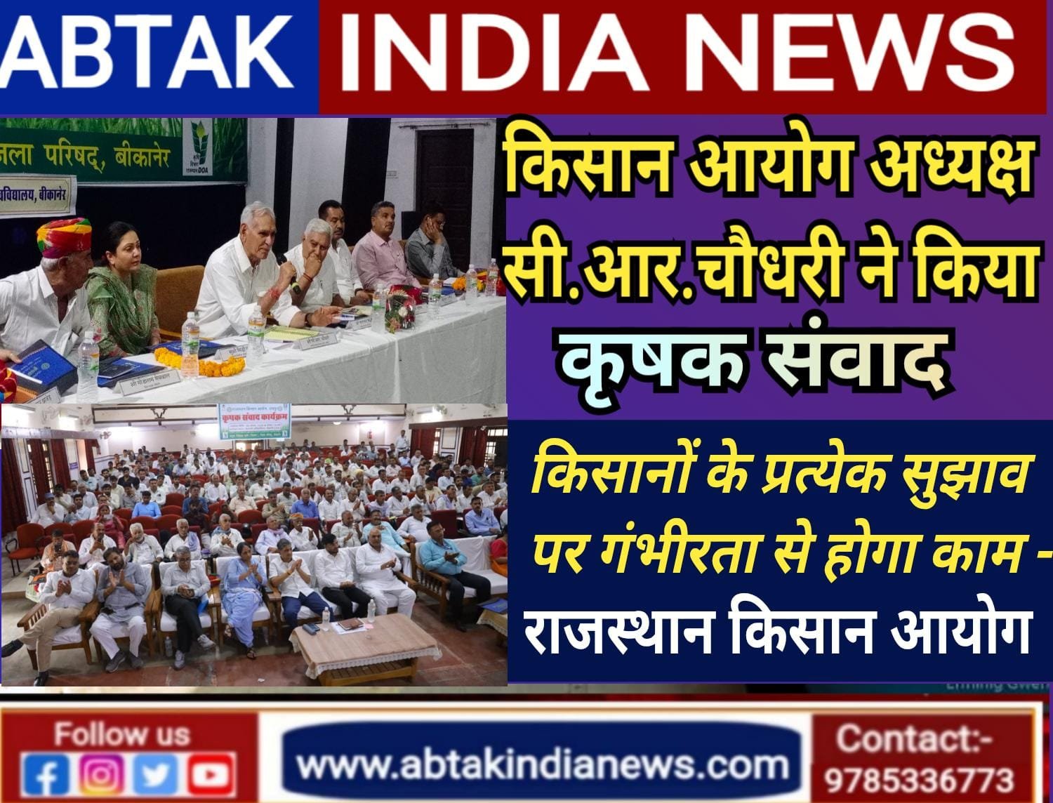 राजस्थान किसान आयोग का कृषक संवाद आयोजित, किसानों के प्रत्येक सुझाव पर गंभीरता से होगा काम, सीआर चौधरी, अध्यक्ष-राज्य किसान आयोग