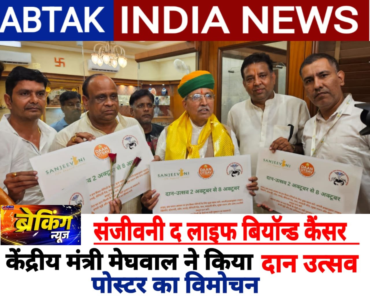 अबतक इंडिया न्यूज 23 सितंबर बीकानेर । संजीवनी द लाइफ बियोंड कैंसर की ओर से 3 से 8 अक्टुबर तक दान उत्सव मनाया जायेगा। जिसके पोस्टर का विमोचन केन्द्रीय कानून मंत्री अर्जुनराम मेघवाल ने किया। इस मौके पर भाजपा नेता मोहन सुराणा,बीकानेर व्यापार उद्योग मंडल अध्यक्ष जुगल राठी,भाजपा जिलाध्यक्ष सुमन छाजेड़,युवा व्यवसायी मुदित खजांची,मनीष सोनी भी मौजूद रहे। संस्थान के कार्डिनेटर अभिषेक जोशी ने बताया कि यह दान का सप्ताह कैंसर रोगियों के लिए खुशियाँ बाँटने के लिए मनाया जाता है। जिसमें बच्चों को गर्म कपड़े,स्टेशनरी,खिलौने,रंग भरने की किट और जलपान,उपहार जैसी ज़रूरी चीज़ें दी जाती हैं।साथ ही रोगियों को भी ड्रेसिंग किट,फल और राशन जैसी वस्तुए भी दी जाती हैं।जोशी ने बताया कि यह आयोजन दानदाताओं की मदद से संभव होता हैं और इसका उद्देश्य वंचित कैंसर रोगियों के जीवन में खुशी और उम्मीद लाना हैं।