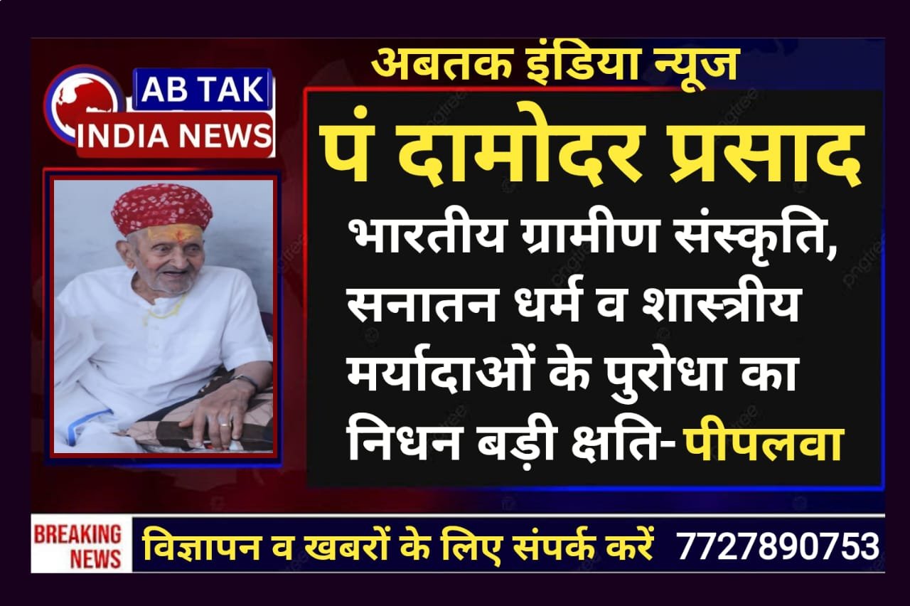 अबतक इंडिया न्यूज बीकानेर 6 जनवरी । 4 जनवरी को विद्वान पंडित दामोदर प्रसाद कठातला का ग्राम रोड़ा में निधनहो गया । पंडित दामोदर प्रसाद कठातला भारतीय ग्रामीण संस्कृति, धर्म और शास्त्रीय मर्यादाओं के जीवंत प्रतीक थे। उनका संपूर्ण जीवन कर्म, साधना और सेवा को समर्पित रहा। वे केवल विद्वान पंडित ही नहीं, बल्कि समाज को दिशा देने वाले मार्गदर्शक थे।