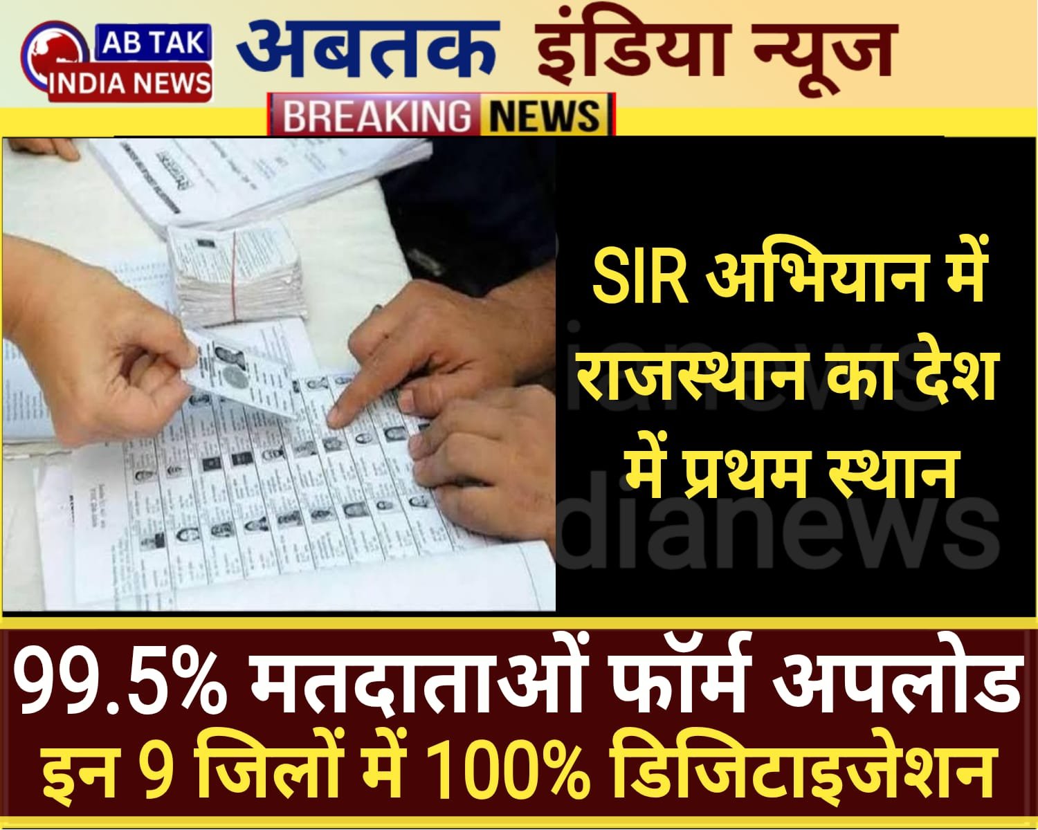 राजस्थान के मुख्य निर्वाचन अधिकारी (Chief Electoral Officer) नवीन महाजन ने बताया कि निर्धारित समय से पहले ही 99.5 प्रतिशत गणना पूरी हो गई है. राजस्थान में अभी तक कुल 5.46 करोड़ गणना प्रपत्रों में से 5.43 करोड़ से अधिक फॉर्म चुनाव आयोग की वेबसाइट (eci.net) पर अपलोड कर दिए गए हैं. बाड़मेर, सलूंबर, बालोतरा, झालावाड़, फलौदी, भरतपुर, चूरू, दौसा और बारां में 100 प्रतिशत डिजिटलीकरण किया जा चुका है.