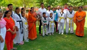 ताईक्वांडो मार्शल आर्ट्स ड्रेस पहने खिलाड़ियों को देखकर खेल मंत्री राज्यवर्धन सिंह राठौड़ ने विशेष रुप से उनसे मुलाकात की और खेल व शिक्षा के क्षेत्र में समन्वय करते हुए सफलता प्राप्त करने के सूत्र बताये। भाजपा खेल प्रकोष्ठ शहर जिला सहसंयोजिका शोभा सारस्वत व वैदिक मार्शल आर्ट एकेडमी चीफ कोच धनंजय सारस्वत के नेतृत्व में खिलाड़ियों ने माल्यार्पण एवं बुके देकर खेल मंत्री का भव्य स्वागत अभिनंदन किया। इस अवसर पर खिलाड़ियों की हौंसला अफजाई के लिए शहर जिलाध्यक्ष सुमन छाजेड़, भाजपा देहात जिलाध्यक्ष श्याम पंचारिया तथा क्वानकिडो एसोसिएशन राजस्थान के स्टेट प्रेसीडेंट देवेन्द्र सारस्वत भी उपस्थित रहे।