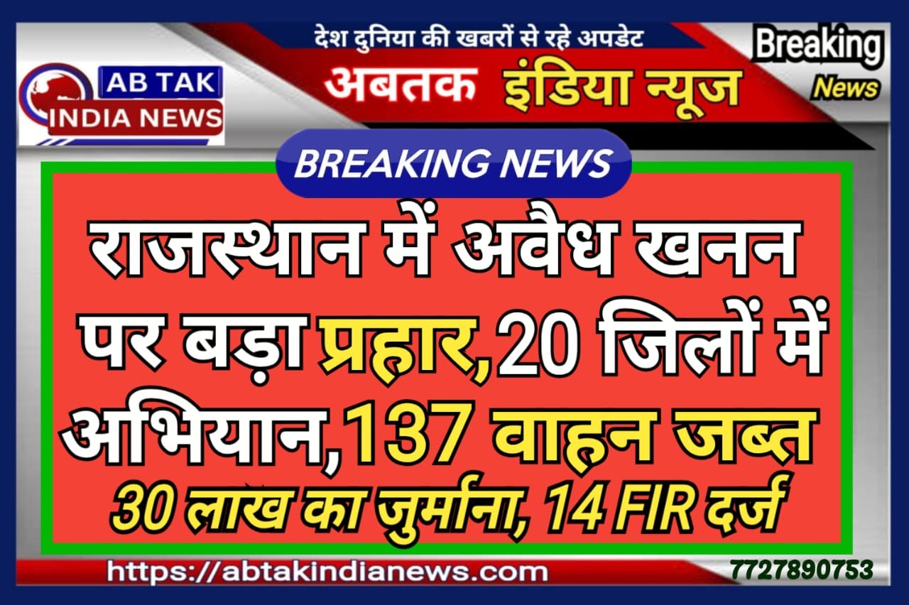 अबतक इंडिया न्यूज 31 दिसंबर । राजस्थान की अरावली पहाड़ियों में फैले अवैध खनन को रोकने के लिए सरकार ने बड़ा अभियान शुरू किया है. मुख्यमंत्री भजनलाल शर्मा के आदेश पर 29 दिसंबर से 20 जिलों में संयुक्त जांच टीमें सक्रिय हैं. इन टीमों ने सिर्फ दो दिनों में अवैध गतिविधियों पर कड़ी चोट की है. अब तक 155 से ज्यादा मामलों में कार्रवाई हो चुकी है जिसमें 12 एक्सक्वेटर जेसीबी और क्रेन समेत 137 डंपर तथा ट्रैक्टर जब्त किए गए.