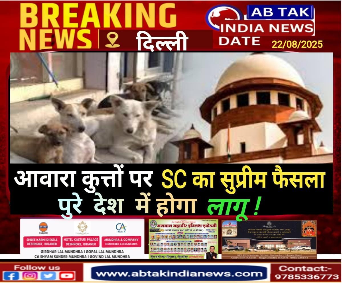 अबतक इंडिया न्यूज दिल्ली 22 अगस्त । दिल्ली-एनसीआर से आवारा कुत्तों को हटाकर उसे शेल्टर होम में स्थायी रूप से रखने के मामले पर सुप्रीम कोर्ट ने फैसला सुनाया है. कोर्ट ने कहा कि हम पिछले आदेश में कुछ संशोधन कर रहे हैं. जस्टिस विक्रम नाथ ने आदेश पढ़ते हुए कहा कि हमने सभी राज्यों और केंद्र शासित क्षेत्रों को पक्ष बनाया है ताकि राष्ट्रीय पॉलिसी पर बात हो सके.