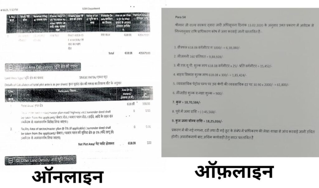 पीरबक्स ने 618.08 वर्ग मीटर कृषि भूमि को गैर कृषि प्रयोजन(पेट्रोल पंप) हेतु 24 फरवरी 2025 को ऑनलाइन आवेदन प्रस्तुत किया था।ऑनलाइन कन्वर्जन शुल्क 4 लाख 35 हजार 679 रुपए की राशि बताई गई।ऑनलाइन आवेदन के बाद बीडीए कार्यालय में जब संपर्क किया तो शुल्क राशि 18 लाख 25 हजार 16 रुपए की शुल्क सूची थमा दी गई जो ऑनलाइन शुल्क से कई गुणा ज्यादा हैं।इस बाबत जब अधिकारियों से बात की तो उन्होंने कहा कि बीडीए अधिकार में आनेवाली भूमि चाहे बीकानेर कोटगेट हो या गीगासर गांव शुल्क एक समान ही होगा। जबकि ग्रामीण व शहरी क्षेत्रों में डीएलसी दर में भारी अंतर है।