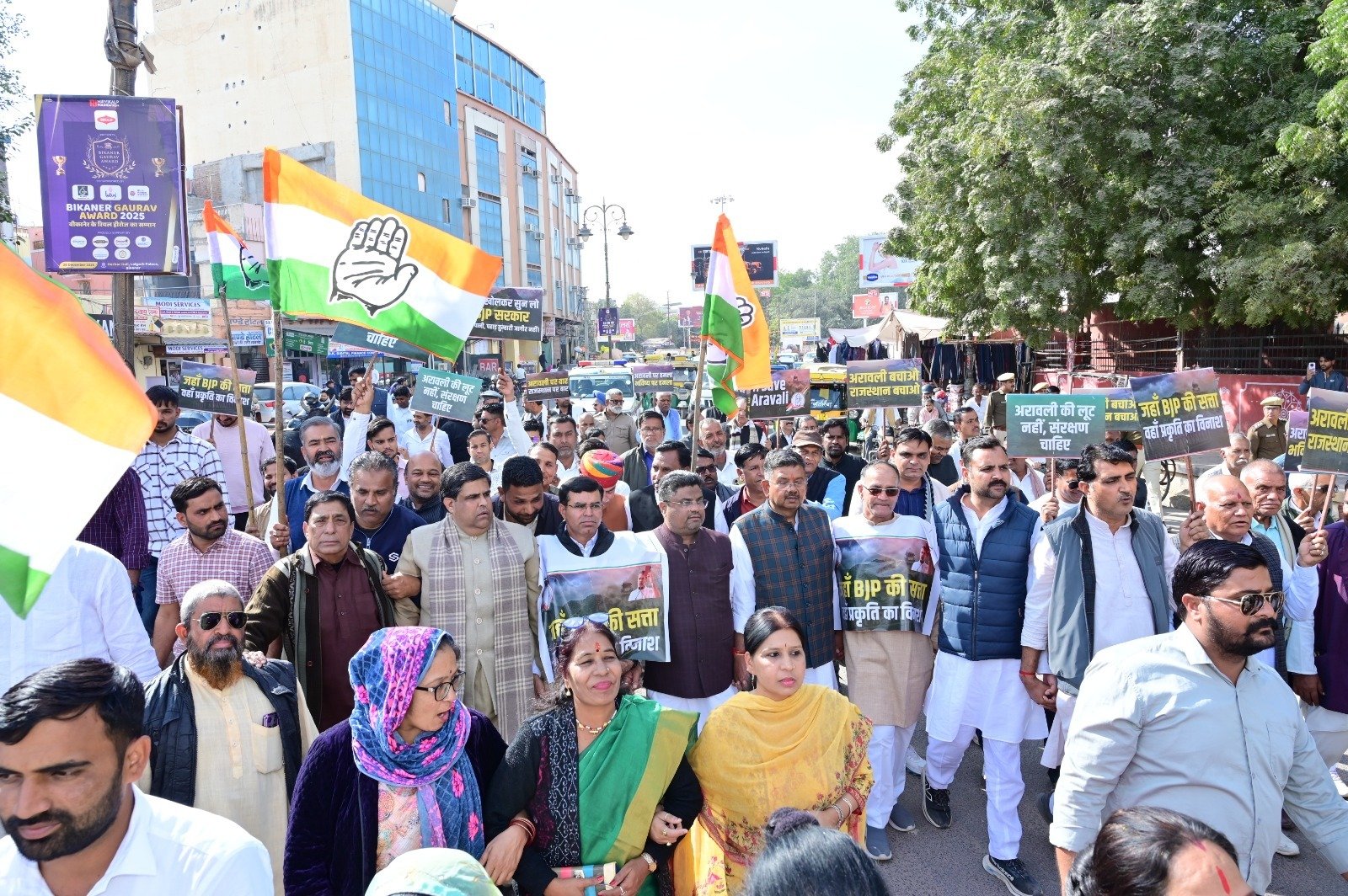 देहात जिला अध्यक्ष बिशनाराम सियाग ने कहा कि जैसा कि सबको ज्ञात है कि अरावली पर्वतमाला ना सिर्फ राजस्थान प्रदेश की ऐतिहासिक धरोहर है, बल्कि प्रदेश की जीवनरेखा भी है, जो ना सिर्फ प्रदेश में रेगिस्तान के विस्तार को रोकने में सहायक है, धूलभरी आंधियों से बचाव करती है और पर्यावरण संतुलन बनाए रखने में सहायक होने के साथ ही प्रदेशवासियों के लिए आस्था का केन्द्र है। अनेक देवालय इस पर्वतमाला पर स्थित है। भारतीय जनता पार्टी की केन्द्र एवं राज्य सरकार द्वारा षड्यंत्र रचकर प्रदेश की पहचान अरावली पर्वतमाला को खनन माफियाओं के हवाले कर खनन पट्टे आवंटित कर समाप्त करने की दिशा में कार्य किया जा रहा है। प्रदेश की इस बहूमुल्य सम्पदा को नष्ट होने से बचाने के लिए कांग्रेस पार्टी के समस्त नेता एवं कार्यकर्ता कृत संकल्प है। अरावली पर्वतमाला समाप्त ना हो और भाजपा द्वारा प्रदेश की सम्पदा को अपने उद्योगपति मित्रों को सौंप कर लुटवाने के षड्यंत्र के विरूद्ध कांग्रेस पार्टी ने जन-जागरण अभियान चलाने के साथ ही अरावली पर्वतमाला को बचाने हेतु केन्द्र एवं प्रदेश की भाजपा सरकार के विरूद्ध व्यापक जन-आंदोलन चलाने का निर्णय लिया है।