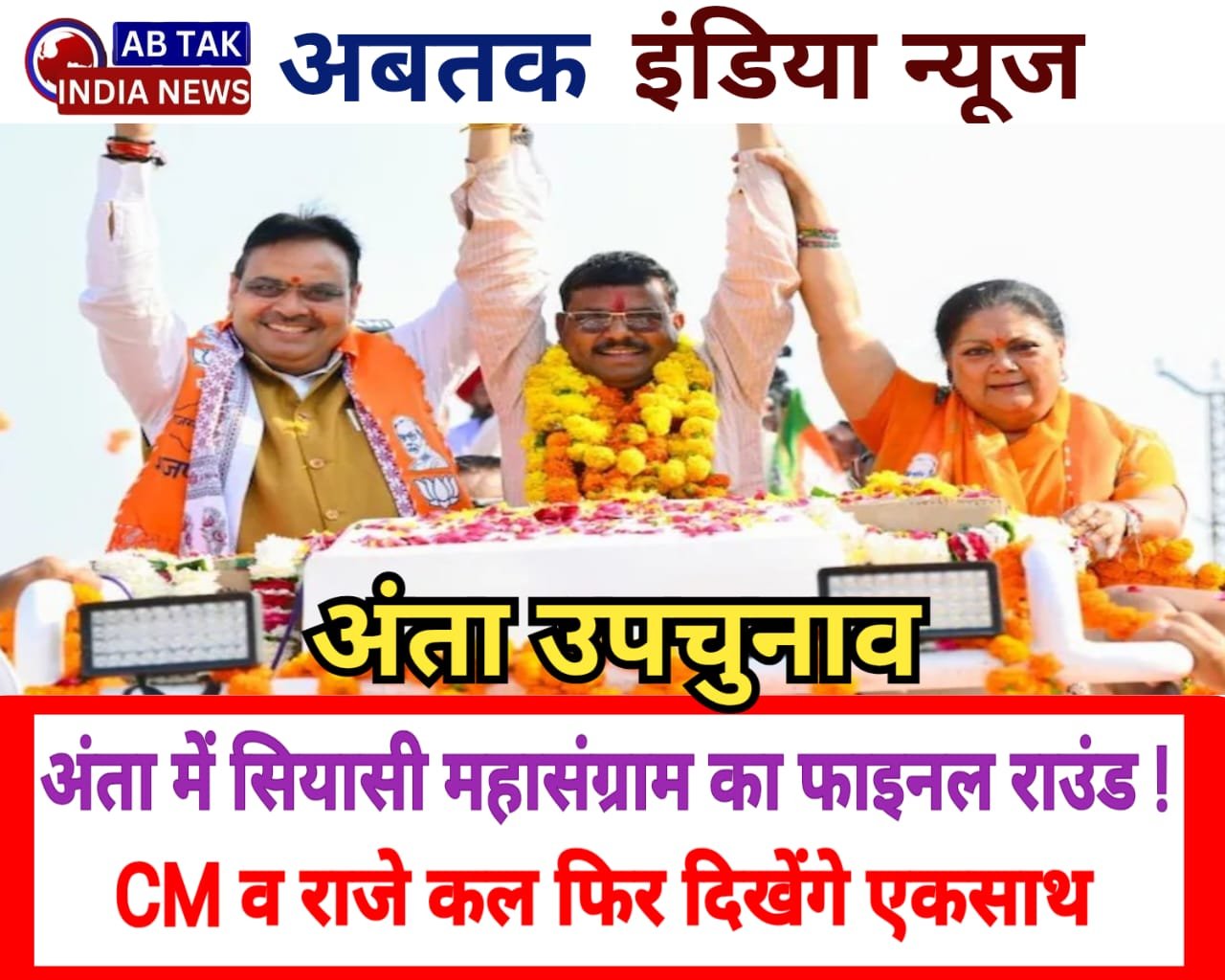अबतक इंडिया न्यूज 8 नवंबर । राजस्थान की अंता विधानसभा सीट पर उपचुनाव के प्रचार के लिए राजनीतिक पार्टियों ने अपनी पूरी ताकत झोंक दी है. अंता में उप चुनाव का रण फाइनल राउंड में पहुंच गया है. बीजेपी और कांग्रेस के नेताओं ने अंता में डेरा डाल रखा है और चुनाव प्रचार में कोई कसर नहीं छोड़ना चाह रहे हैं. राजस्थान के मुख्यमंत्री भजनलाल शर्मा रविवार को फिर से अंता में रोड शो करेंगे. इस दौरान उनके साथ पूर्व सीएम वसुंधरा राजे और बीजेपी प्रदेश अध्यक्ष मदन राठौड़ भी मौजूद रहेंगे.