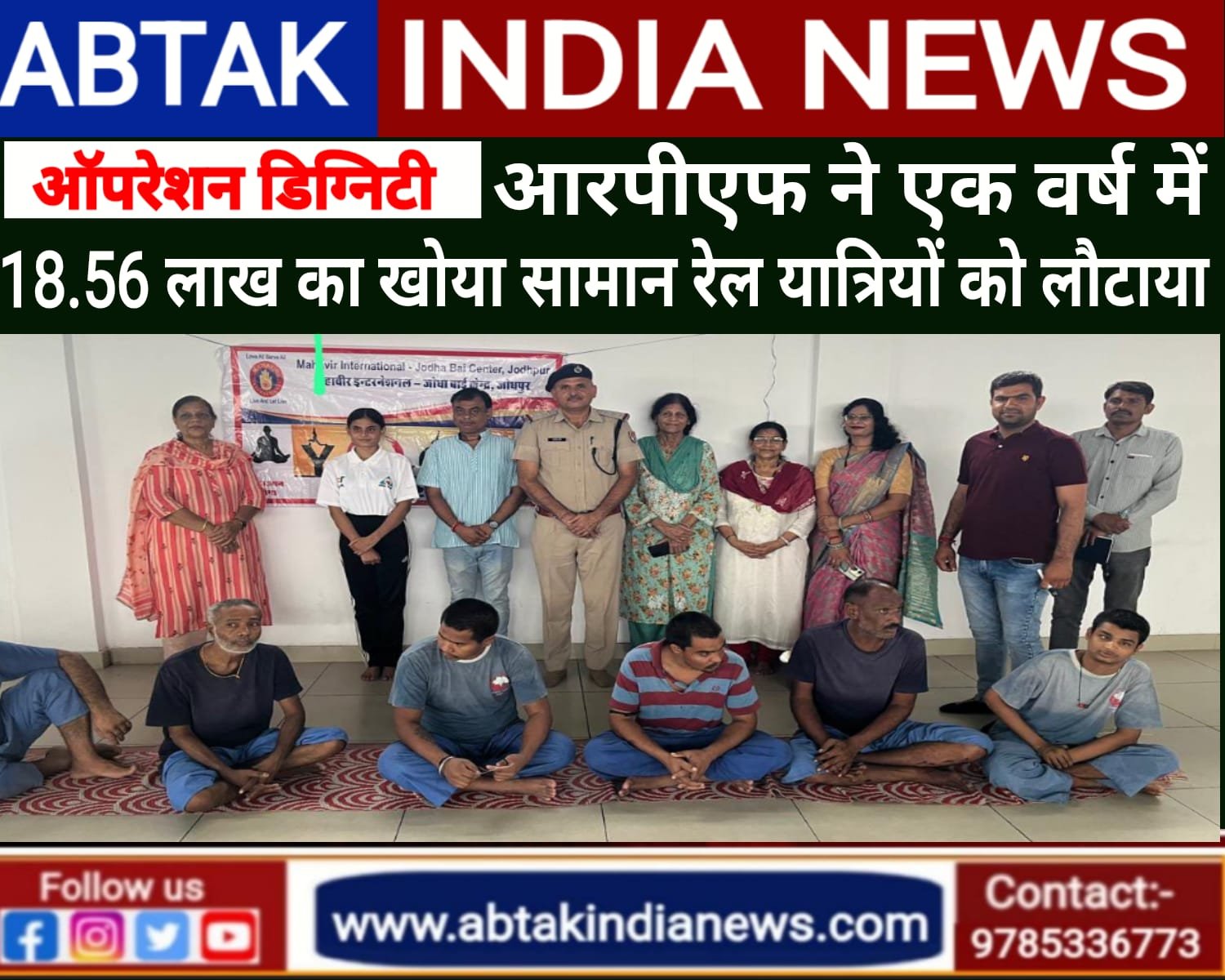 वरिष्ठ मंडल सुरक्षा आयुक्त (आरपीएफ) नीतीश शर्मा के अनुसार जोधपुर रेलवे सुरक्षा की ओर से चलाए जा रहे ऑपरेशन डिग्निटी अभियान के तहत वर्ष 2024-2025 में स्टेशन पर मिले 411 बेसहारा और निराश्रितों को अपना घर आश्रम में पहुंचाया गया जिनमें से 184 व्यक्तियों को भरतपुर पुनर्वास केंद्र भेजा गया।