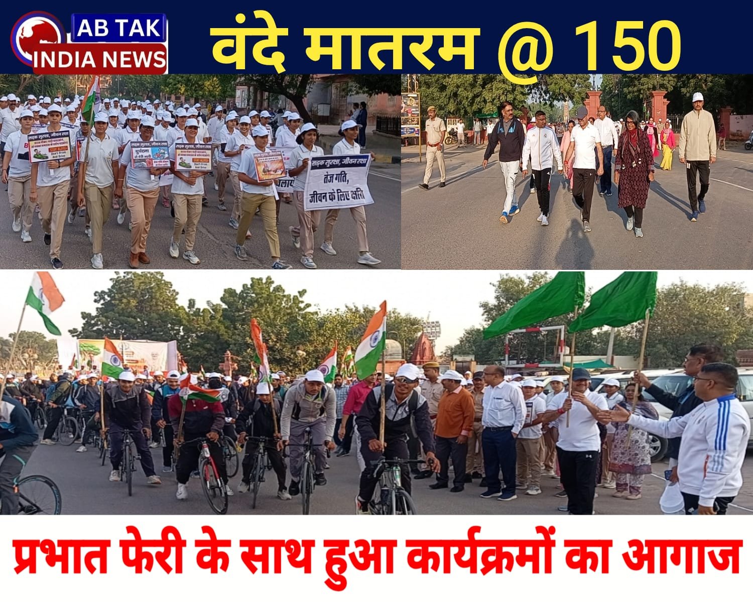 अबतक इंडिया न्यूज बीकानेर, 7 नवम्बर। राष्ट्रगीत वंदे मातरम के 150 वर्ष पूर्ण होने पर वंदे मातरम@150 कार्यक्रमों की शुरुआत शुक्रवार को प्रभात फेरी से हुई। भारत माता की जयघोष और वन्दे मातरम के नारों के बीच संभागीय आयुक्त विश्राम मीणा, महानिरीक्षक पुलिस हेमंत शर्मा, जिला कलेक्टर श्रीमती नम्रता वृष्णि और पुलिस अधीक्षक कावेंद्र सागर ने जूनागढ़ के आगे से हरी झंडी दिखाकर इसे रवाना किया।