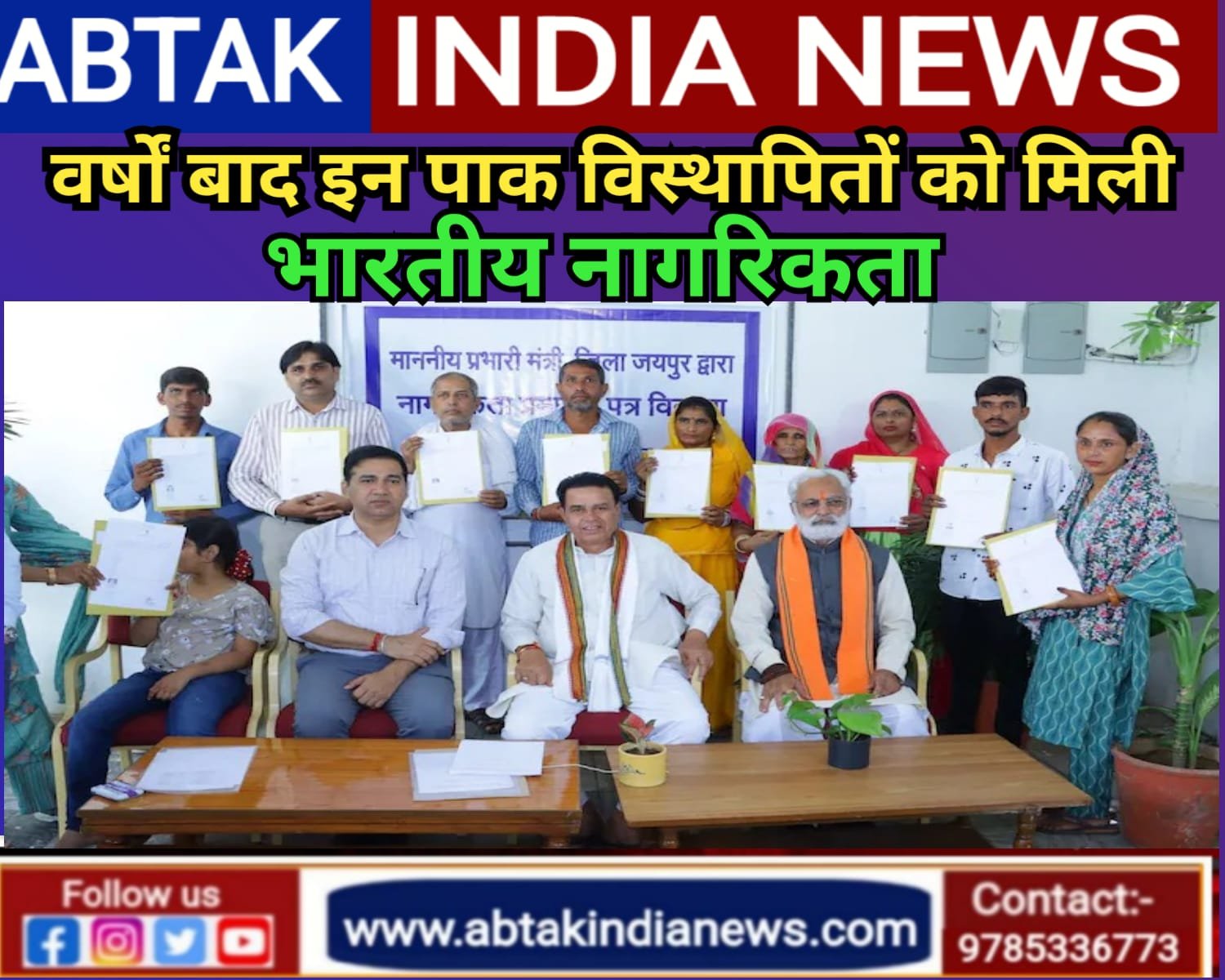 बरसो का इंतजार खत्म ,इन पाक विस्थापितों को मिली भारतीय नागरिकता